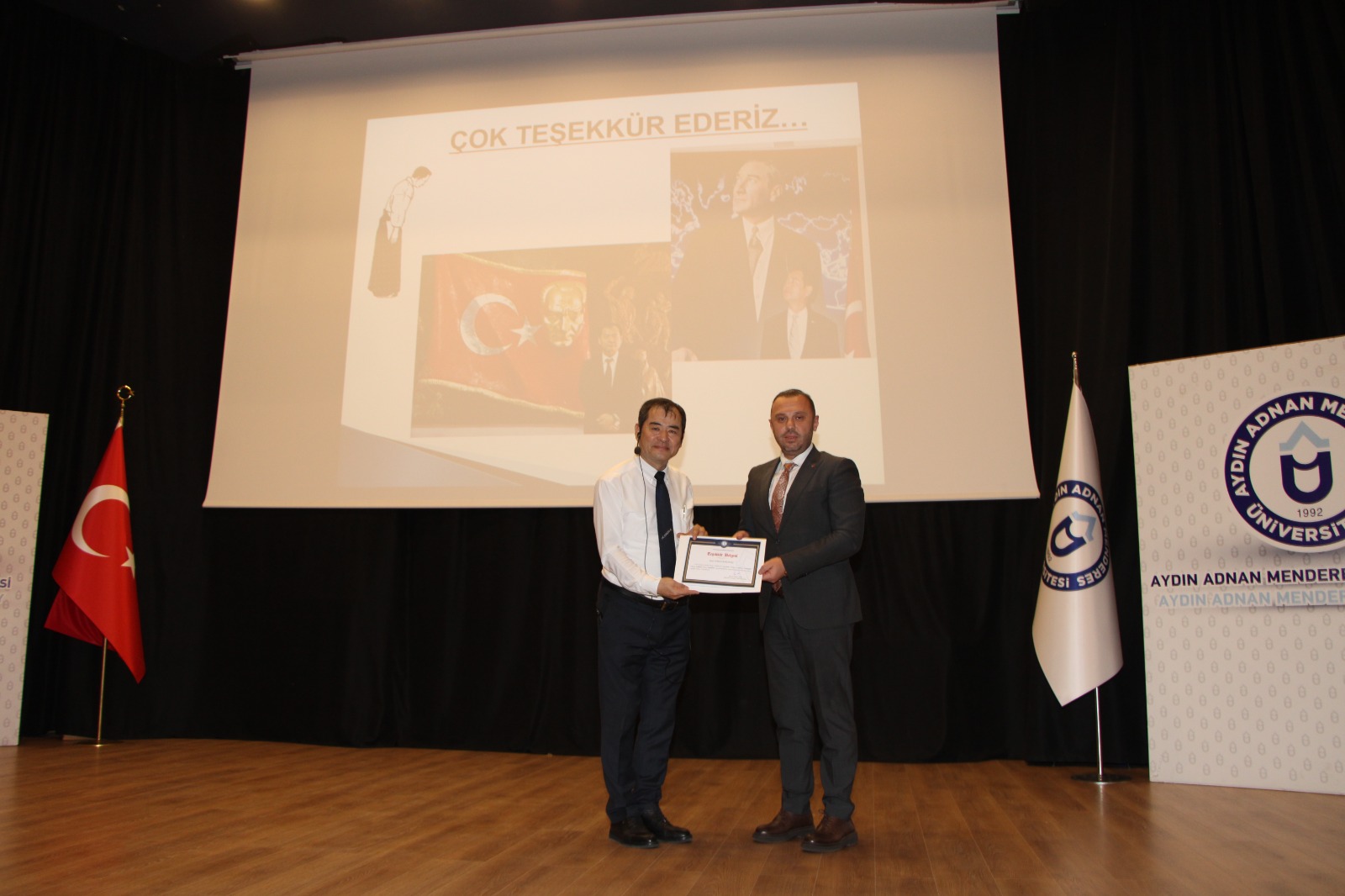 Üniversitemiz Rektör Yardımcısı Prof. Dr. Cemal İyem tarafından, Yoshinori Moriwaki’ye katkılarından dolayı teşekkür belgesi takdimi ile program sona erdi.