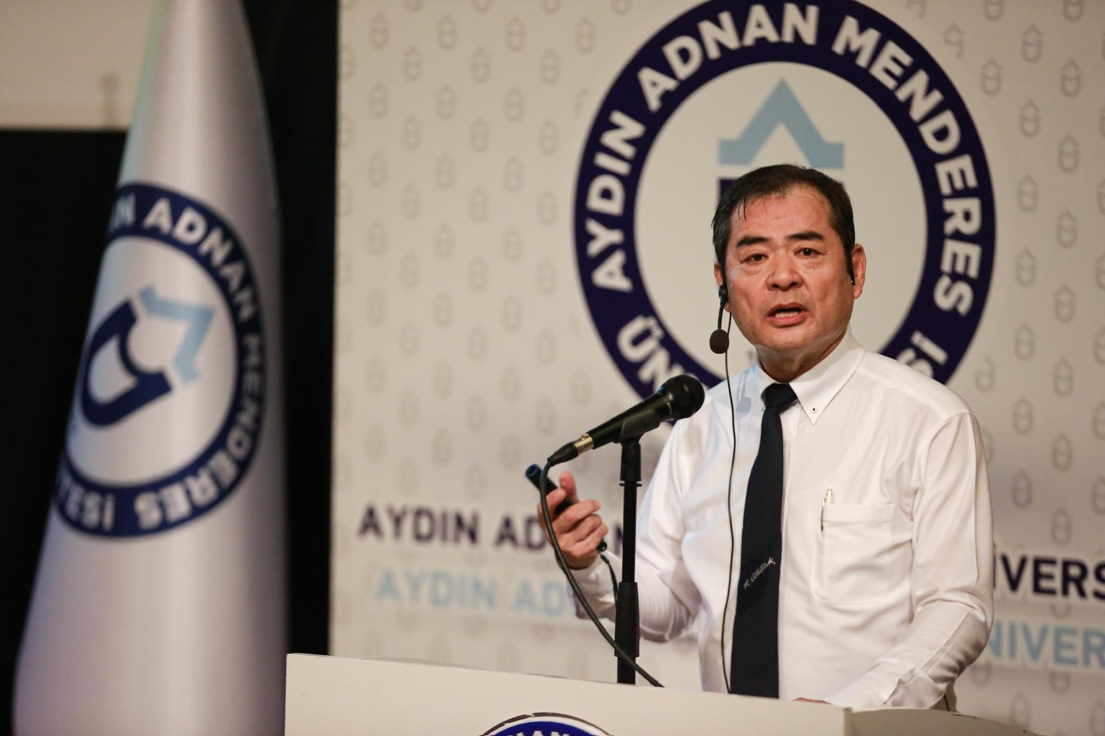 Saygı Duruşu ve İstiklal Marşı’nın okunmasının ardından Yoshinori Moriwaki, “Türkiye ve japonya Arasındaki deprem Felaketini Önleme Farklılıkları” başlıklı sunumunu gerçekleştirdi.