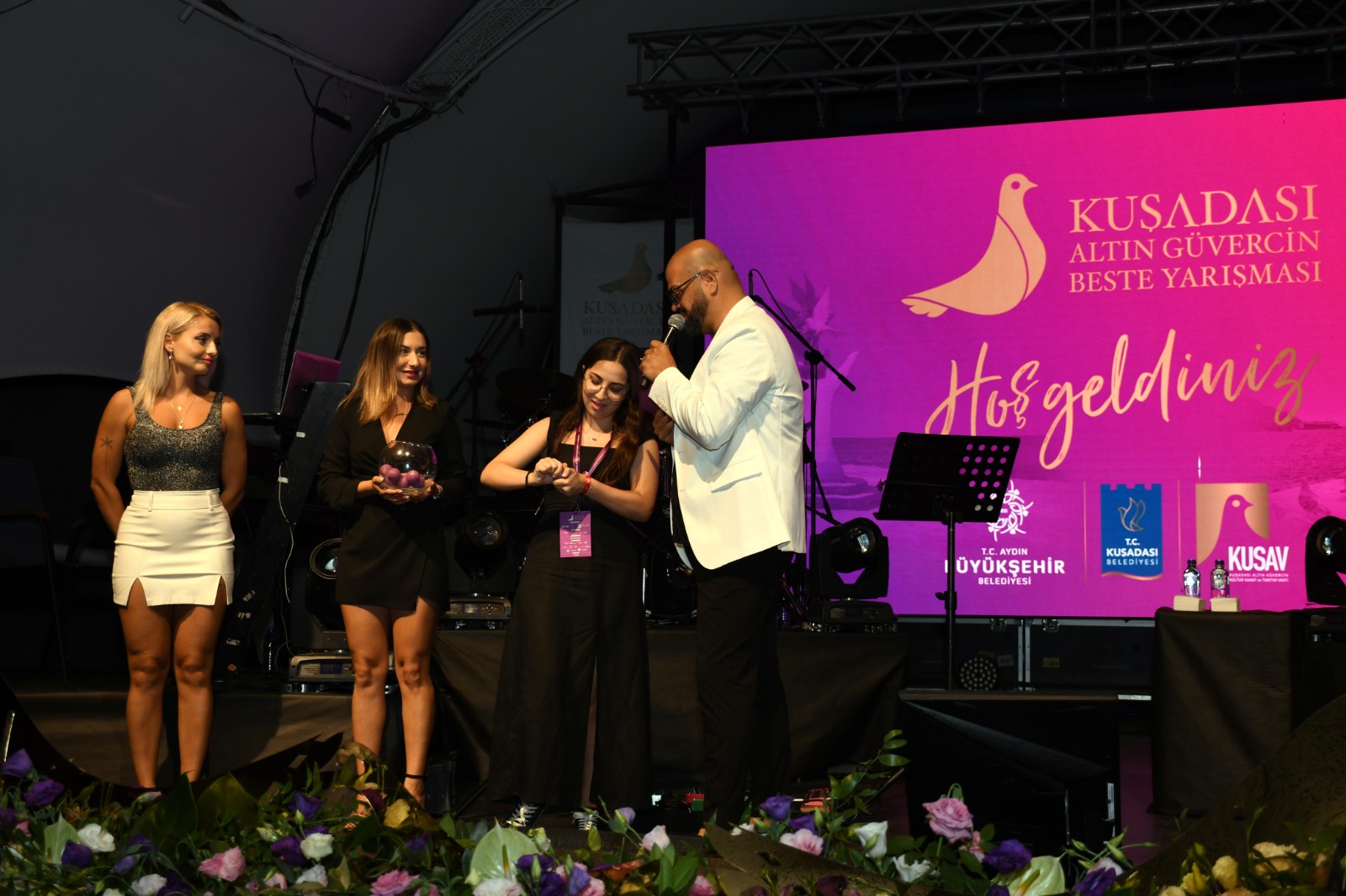 Aydın Büyükşehir Belediyesi, Kuşadası Belediyesi ve Kuşadası Altın Güvercin Kültür, Sanat ve Tanıtım Vakfı (KUSAV) iş birliğinde düzenlenen 26. Altın Güvercin Beste Yarışması’nda finalistlerin sahneye çıkış sırası çekilen kura ile belirlendi. Kura çekimi için düzenlenen geceye katılan Türk pop müziğinin sevilen ismi Emre Altuğ, Kuşadası’nda bulunmaktan duyduğu mutluluğu dile getirerek “Altın Güvercin Beste Yarışması’nın açılışında konser vermek benim için çok özel ve heyecan verici” dedi.