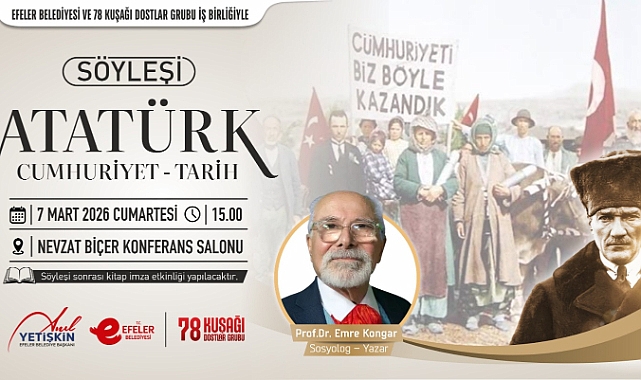 7 Mart 2026 Cumartesi günü saat 15.00’te Nevzat Biçer Konferans Salonu’nda gerçekleştirilecek etkinlik, Efeler halkına hem düşünsel hem de kültürel bir buluşma imkanı sunacak. Söyleşinin ardından Prof. Dr. Kongar, okurları için kitap imza etkinliği de gerçekleştirecek.