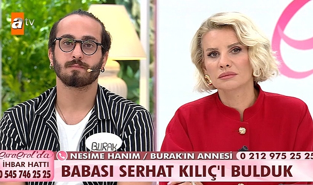 Esra Erol dakikalar içinde biyolojik baba Serhat Kılıç ve ailesine ulaştı. Canlı yayına bağlanan Serhat Kılıç, yıllarca oğlunu aradığını fakat anne Nesime’nin “çocuğun babası sen değilsin” diyerek buna engel olduğunu söyledi. “Sen benim ilk aşkımdın. Yıllarca bu olayın peşinden koştum. Senden sonra evlendiğim kişi bile Burak’ı aradı. ” Diyerek isyan etti.