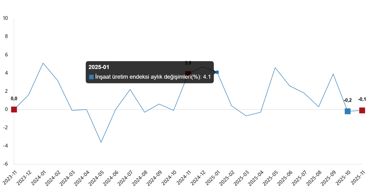 İnşaat üretim endeksi aylık değişimleri(%), Kasım 2025