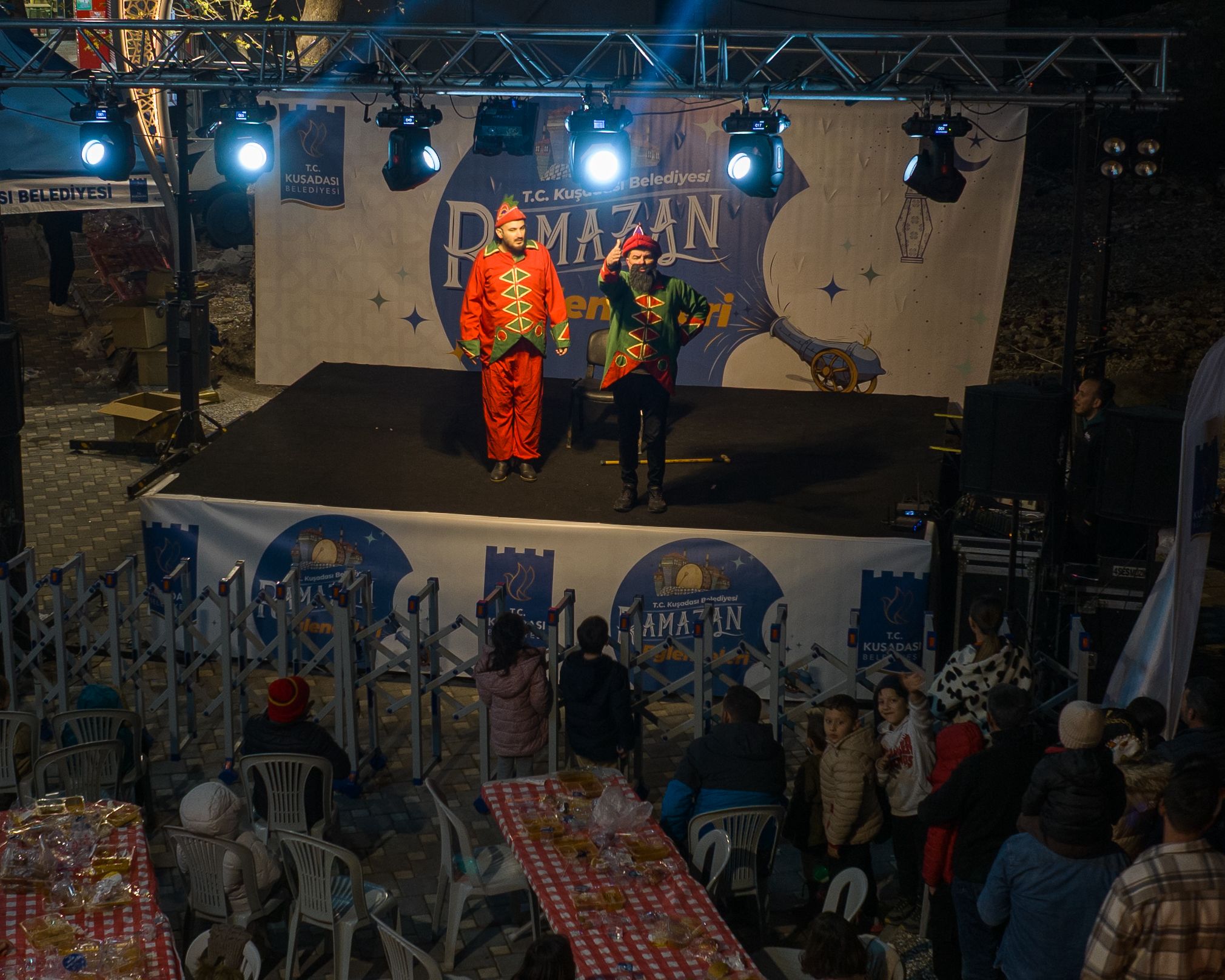 İftar sonrası başlayan etkinlikler ise modern şehir hayatına, özlenen o Eski Ramazanların ruhunu katıyor. Hacivat ve Karagöz’ün tatlı atışmaları, çocukların kahkahalarıyla yankılanıyor. Komedi Dans Üçlüsü’nün enerjisi ve sihirbazlık gösterileri, her yaştan izleyiciye keyifli anlar yaşatıyor. Geleneksel tınıların ön planda olduğu Tasavvuf müziği ise ortamda hâkim olan huzur atmosferini pekiştiriyor.