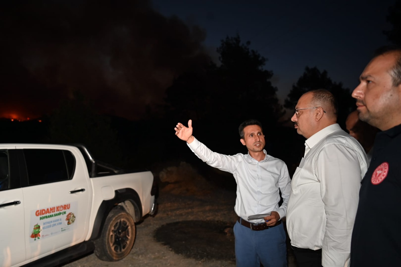 Vali Canbolat Bozdoğan ilçesinde yangın bölgesinde.