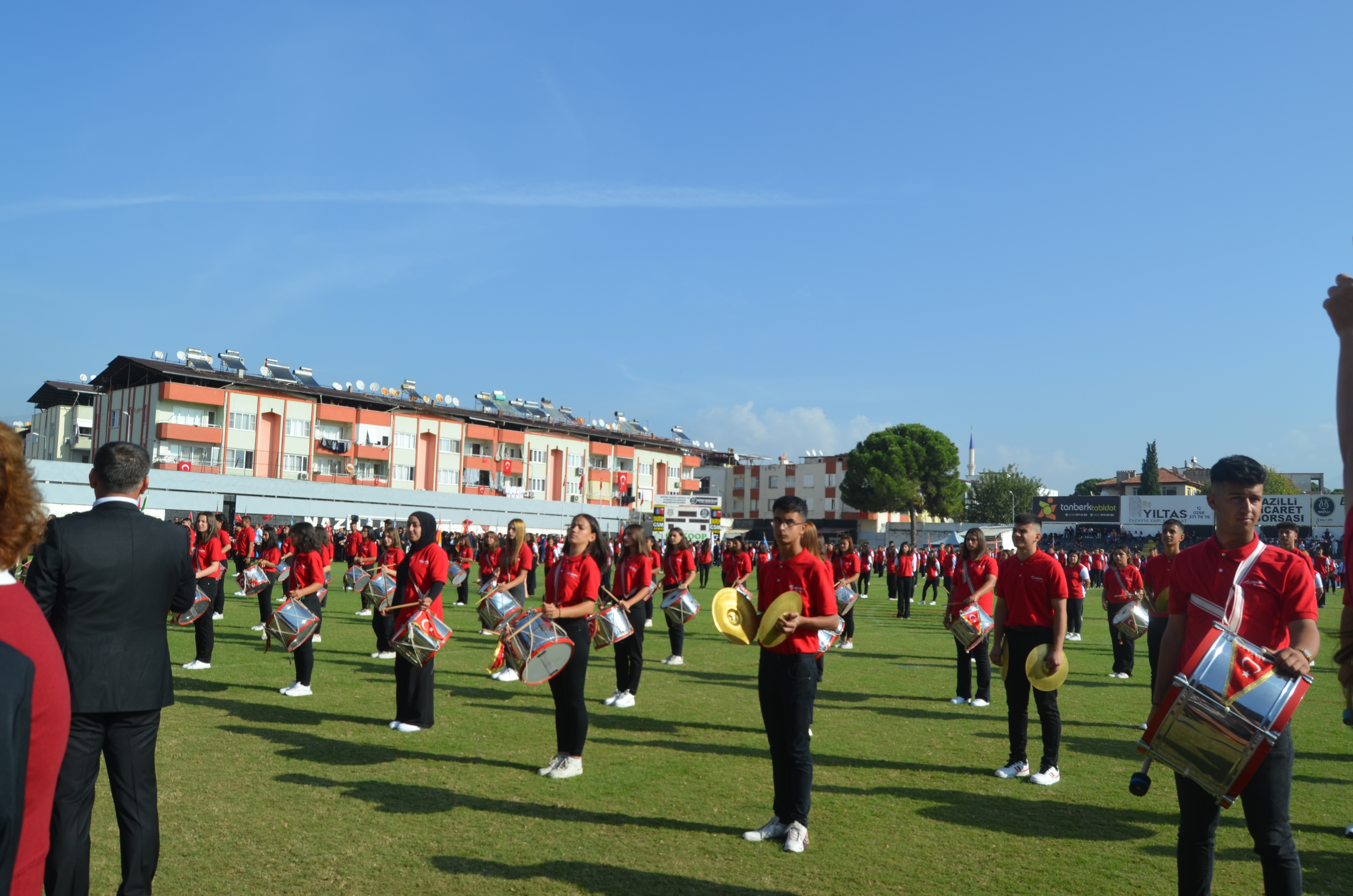 Dün Başlayan Çelenk koyma törenleri sonrasında bugün Nazilli Kaymakamı Sedat Sırrı Arısoy, Kaymakamlık Makamında tebrigat töreni ile tebrikleri kabul etti.Tebrigat töreni sonrasında Nazilli Şehit Stadyumunda İlçe Milli Eğitim Müdürlüğü İlçe Spor ve Gençlik Müdürlüğü organizasyonu ile 29 Ekim cumhuriyet Bayramı törenleri düzenlendi.Nazilli Şehir stadyumunda düzenlenen törenlere Nazilli Kaymakamı Sedat Sırrı Arısoy, Nazilli Belediye Başkanı Kürşat Engin Özcan, İlçe Jandarma Komutanı Yüzbaşı Caner Özkul, İlçe Emniyet Müdürü Şafak Yıldırım, İlçe Milli Eğitim Müdürü İsmail Şimşek, Şehit ve Gazi ve gazi yakınları, Siyasi Parti Temsilcileri STK Üyeleri, Muhtarlar ve binlerce kişi katıldı.Törenler Nazilli Kaymakamı Sedat Sırrı Arısoy, Nazilli Belediye Başkanı Kürşat Engin Özcan, İlçe Jandarma Komutanı Yüzbaşı Caner Özkul, Nazilli İlçe Emniyet Müdürü Şafak Yıldırım’ın Stadyuma gelmesi ile başladı.Stadyumda Halkı ve Öğrencileri selamlayan protokol daha sonra Şeref türbinine geçti.Daha sonra Ulu Önder Gazi Mustafa Kemal Atatürk ve Silah Arkadaşlarının aziz hatırasına saygı duruşu ve İstiklal Marşımız okundu.Nazilli Kaymakamı Sedat Sırrı Arısoy günün anlam ve önemine ilişkin bir konuşma gerçekleştirdi. Kaymakam Sedat Sırrı Arısoy konuşmasında şunlara değindi. “Bugün geçmişimizden aldığımız güçle, ezelden ebede büyük umutlar ve emin adımlarla birlik ve beraberlik içerisinde yürürken, Gazi Mustafa Kemal Atatürk'ün "Türk Milletinin karakterine ve geleneklerine en uygun idare" olarak ifade ettiği geleceğimizin teminatı, dirilişin sembolü Cumhuriyetimizin kuruluşunun 100. yıl dönümünü idrak etmenin ve ikinci asrına adım atmanın coşkusu ve mutluluğu içindeyiz. Türk Milleti Cumhuriyetin İlanı ile esaret zincirlerini kırmıştır. Türk milleti, bundan yüz yıl önce, Gazi Mustafa Kemal'in önderliğinde, "Bağımsızlığın ancak milletin azim ve kararıyla mümkün olduğu" aydınlanmasıyla çıkmış ve esaret zincirlerini kırmıştır. Türk milletinin tarih yolculuğundaki varoluş mücadelesi Cumhuriyetin ilanı ile taçlanmıştır. Bağımsızlık düşüncesi ile inşa edilen Türkiye Cumhuriyeti, istiklal mücadelemizi zafere ulaştıran birlik ve beraberlik ruhunun büyük eseridir.100. yılını kutladığımız Türkiye Cumhuriyeti'nin kuruluş tarihi, çağın nabzı yakalandığında, halkın gelişme yeteneğinin nasıl milli iradeye dönüştüğünün mükemmel bir örneğidir. Her türlü yokluklar ve imkânsızlıklar içinde, büyük bir inanç, azim ve fedakârlıklarla yürütülen "Millî Mücadele"nin, istiklal Savaşımızın sonucunda elde edilen başarının tacıdır, Cumhuriyet! Cumhuriyet Yönetim değil Yaşam Biçimidir. Türkiye, Cumhuriyeti yönetim şekli olarak seçmiş dünyadaki onlarca ülkeden sadece biridir. Ama hiçbir ülke Cumhuriyeti bizim gibi görmez. Bizim gibi hissetmez. Çünkü Cumhuriyet bizim için sadece bir yönetim şekli değil, bir yaşam biçimidir. Bizim için Cumhuriyet; Bitmek tükenmek bilmeyen bir muasır medeniyet yolculuğudur. Kıymet bilmektir. Yeniliğe açık olmaktır. Durduğun yerle yetinmemektir. Gücünü birlik ve beraberlikten almaktır. "Bir" olabilmekten gurur duymaktır. Türkiye'nin ve Türk insanının her şeyin en iyisine layık olduğuna inanmaktır. Eşitliktir. Evlâtlarımıza "cumhuriyetin vatan kadar önemli olduğunu" ancak cumhuriyetin kelime anlamının ötesinde, memleketimiz için manevi anlamını anlatmalıyız ki daha iyi anlaşılabilsin.Bunun için bir asır evvelin umûmî manzarasının anlaşılması şarttır. Cihan Harbinden sonra Sevr ile bize ödetilmek istenen bedel, sadece yüzyıllardır vatan bildiğimiz toprakların elimizden alınması değildi; yeni nizam hür ve medenî ulusların arasında Türk'e artık yer vermeyecekti. Atatürk önderliğinde giriştiği Kurtuluş Savaşıyla istiklâlini kazanan ulusumuz, yine onun eseri olan Cumhuriyetimizle sadece çağdaş bir yönetim biçimini benimsediğini değil medenî ve saygın uluslar liginde yer almaya devam etmek istediğini dünyaya ilân etmiştir. Filhakika Cumhuriyet, her şeyden evvel, büyük bedeller ödeyerek kazandığımız "millî onur davamızın adıdır". Eğitim, bilim, sanat ve kültür alanlarında gerçekleştirdiği atılımlar, oluşturduğu köklü kurumlarla, kadim medeniyetlerin beşiği bu topraklarda yeniden yakılan "uygarlık ateşidir" Cumhuriyet. Tarımdan sanayiye, sağlıktan ulaşıma "çağı yakalama ve hatta aşma ülküsüdür". Atatürk’ün Çizdiği Yol Aklın ve Bilimin yoludur ve hala geçerlidir.Atatürk'ün Türkiye için çizdiği yol hâlâ tek geçerli yoldur; çünkü aklın ve bilimin yoludur. Cumhuriyetin ikinci asrına girerken bu istikâmetten asla şaşmadan, daha da çok çalışarak ülkemizin ekonomik ve toplumsal gelişimi sürdürülmelidir. Büyük Cumhuriyet emanetini taşıyabilmek ve ilelebet payidar kalmasını sağlayabilmek için "Türk milletinin yürümekte olduğu ilerleme ve uygarlık yolunda elinde ve başında tuttuğu meşale, müspet ilimdir." diyen Atatürk'ün çağdaş uygarlık seviyesine ulaşma hedefi doğrultusunda, hür düşünce ve pozitif bilimin rehberliğinde ilerlemeli; Cumhuriyet ilkelerinin etrafında kenetlenerek, bireysel ve kurumsal olarak hiç durmadan kendimizi geliştirmeli, inanç ve tutkuyla çalışmalıyız. Türkiye Cumhuriyeti vatandaşı olmanın gururuyla, "istiklal Savaşı" kahramanlarının, bu Cumhuriyet'i kuran atalarımızın ahfadı olmanın onuruyla, Cumhuriyetimizin 100. yılını coşkuyla kutluyor; Gazi Mustafa Kemal Atatürk önderliğinde Cumhuriyet'i bizlere armağan etmiştir.”Nazilli Kaymakamı Sedat Sırrı Arısoy’un konuşmasından sonra Bando Eşliğinde Okulların geçit töreni gerçekleştirildi. Binlerce kişi alkışlarla g