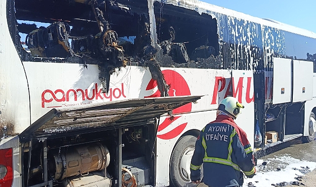 Şehirlerarası yolcu taşımacılığı yapan yolcu otobüsü Nazilli’yi geçtikten 10 km sonra sebebi henüz belirlenemeyen bir şekilde yanmaya başladı.