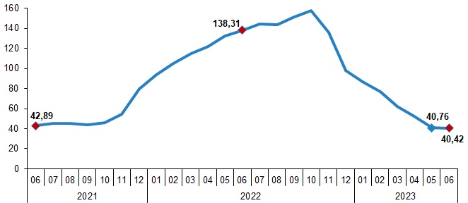 Yİ-ÜFE yıllık değişim oranı (%), Haziran 2023