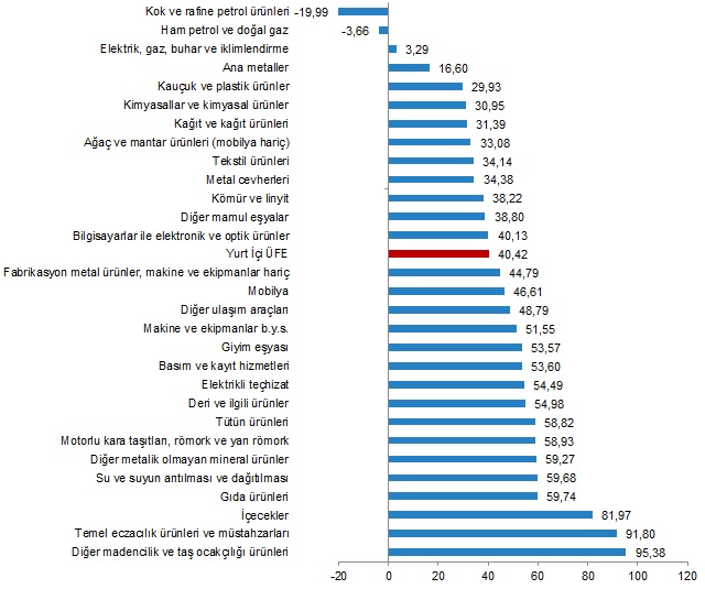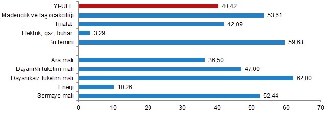 Yıllık Yİ-ÜFE'ye göre 13 alt sektör daha düşük, 16 alt sektör daha yüksek değişim gösterdi